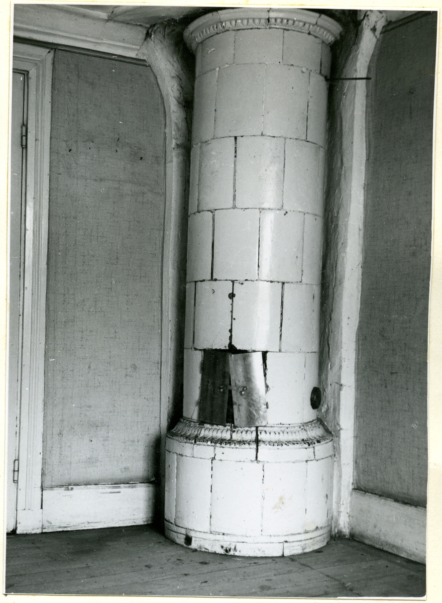 Titel: Norberg sn, Norberg, Olofsfors. Kakelugn i salen, 1949.