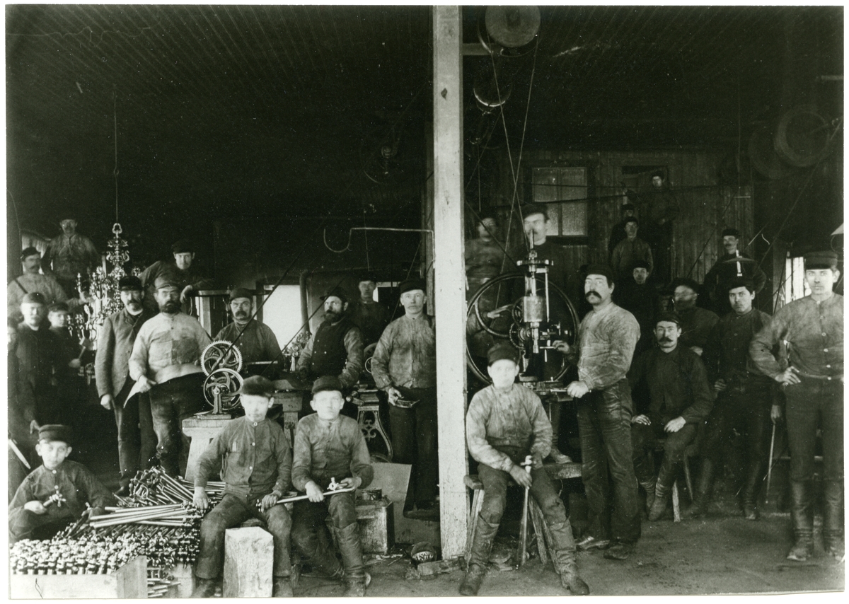 Interiör med arbetslaget i Thorshammars Verkstads AB, 1896.
