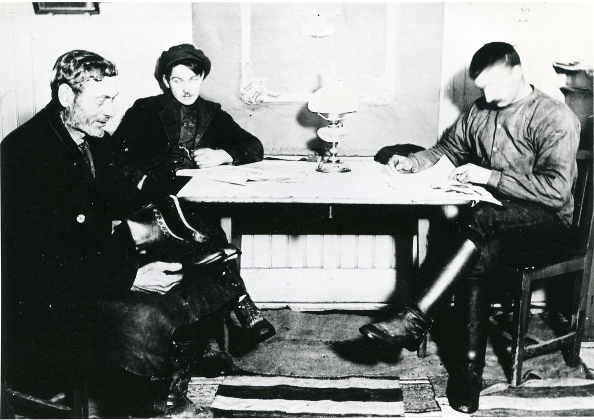 Anders Olsgården. Skomakare på besök, c:a 1915.
