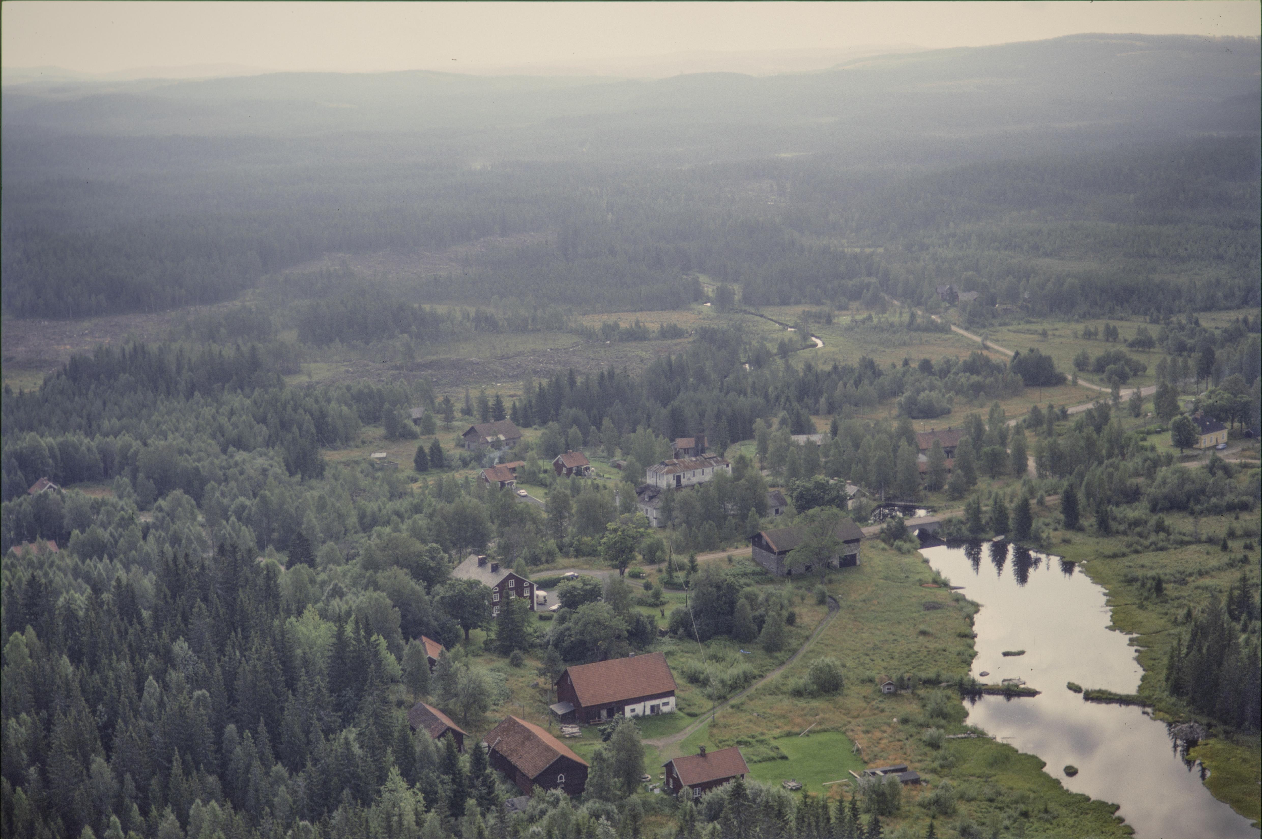 Motjärnshyttan byggnadsminne RAÄnr Nordmark 15:1-2 mellan Hyttjärnen och Hyttälven. Herrgården vid bildens mitt. Bilden är tagen mot (väderstreck): SO
