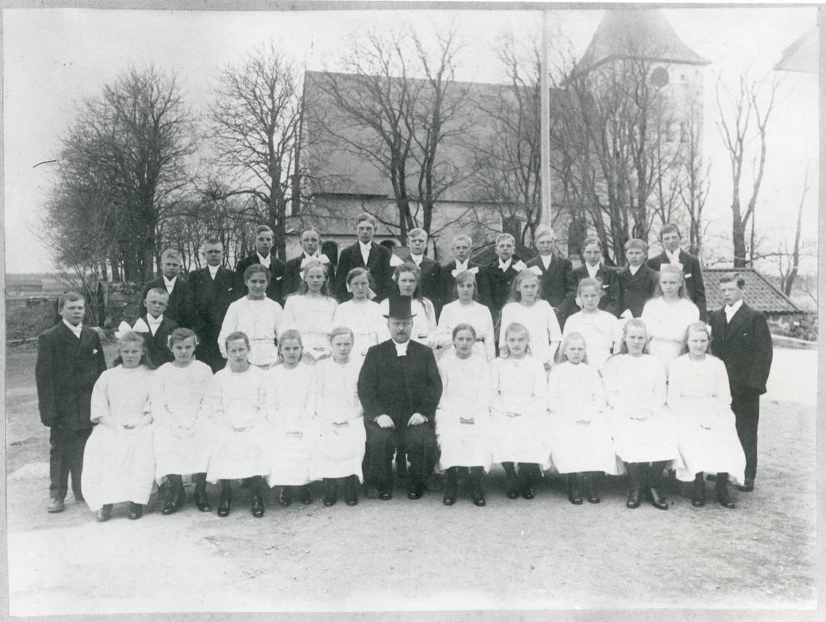 Konfirmander och präst från Romfartuna kyrkskola 1920.