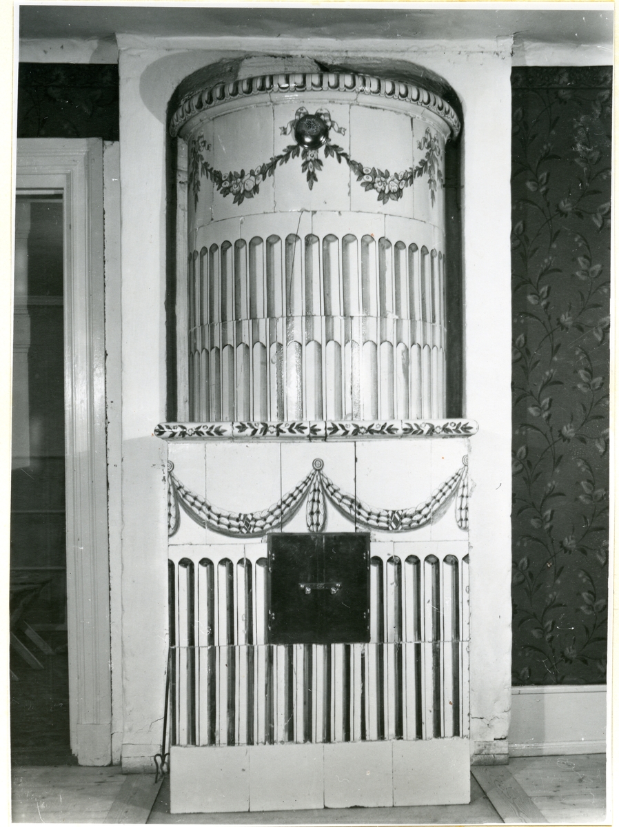 Interiör av Sösta gård, med kakelugn, 1949.