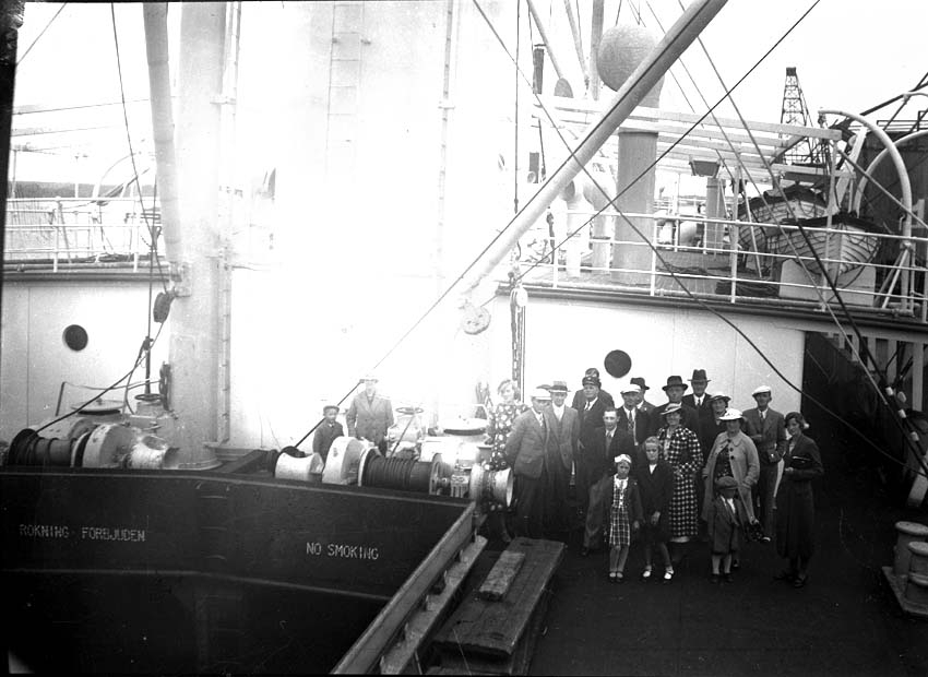 Grupporträtt ombord på ett större fartyg.