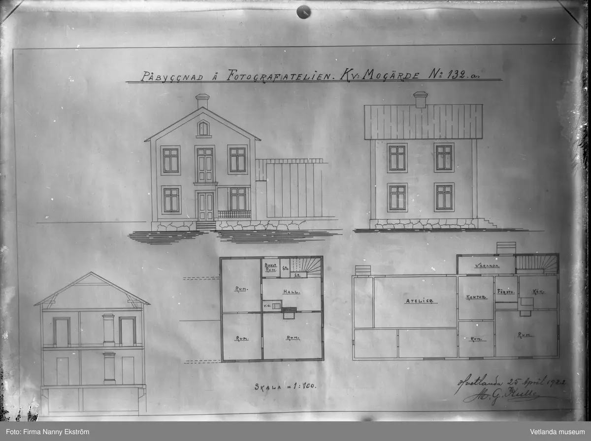 Ritning till påbyggnaden av fotoateljén, kvarteret Mogärde, april 1922