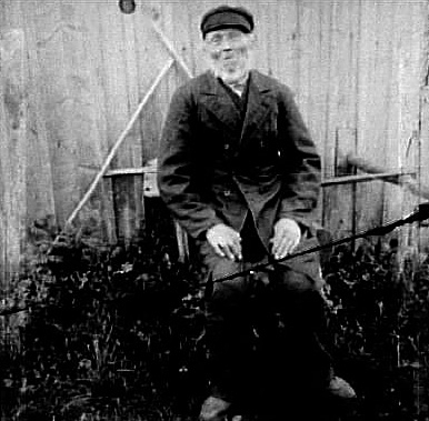 EN GAMMAL MAN SITTER PÅ EN BÄNK.