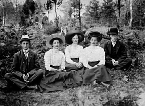 MÄN OCH KVINNOR I EN SKOGSBACKE.
