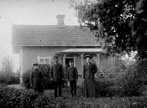 BROVAKTEN MED SIN FAMILJ FRAMFÖR BROVAKTARSTUGAN.
