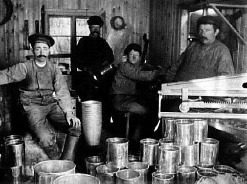 FYRA PLÅTSLAGARE ARBETAR I VERKSTADEN.