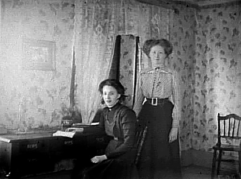 TVÅ KVINNOR VID ETT SKRIVBORD.