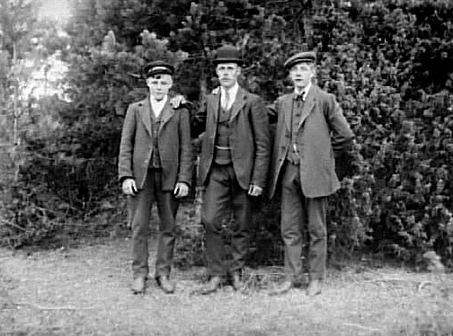TRE MÄN STÅENDE INTILL ETT ENBÄRSSNÅR.