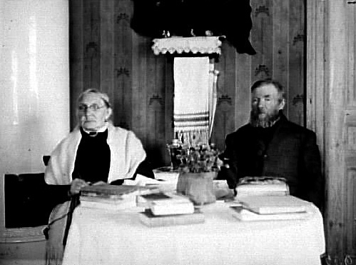 ETT ÄLDRE PAR SITTER VID BORDET I KÖKET