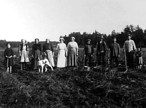 JORDBRUKSBEFOLKNING I FÄRD MED POTATISPLOCKNING.