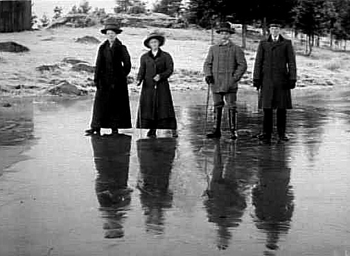 TVÅ KVINNOR OCH TVÅ MÄN STÅR PÅ ISEN.