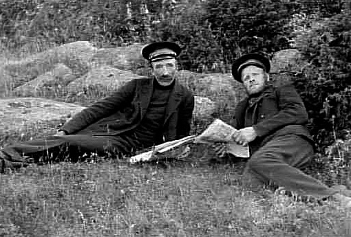 TVÅ FRÄLSNINGSSOLDATER LIGGER I GRÄSET OCH LÄSER TIDNING