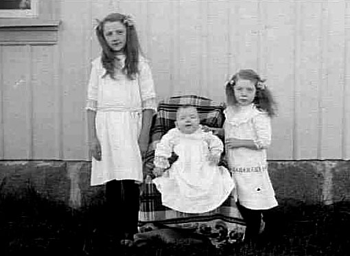 TRE SYSKON UTANFÖR HUSVÄGGEN.
