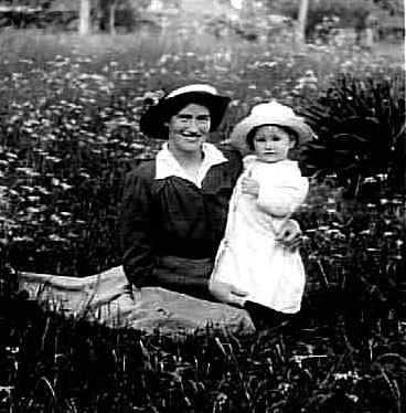 EN MOR MED SITT LILLA BARN SITTANDE I GRÖNGRÄSET.
