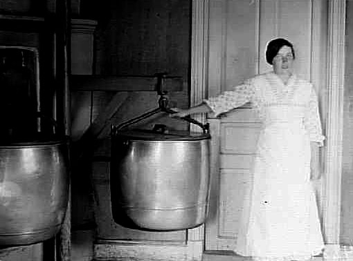 EN KVINNA STÅR VID YSTKÄRLEN.
