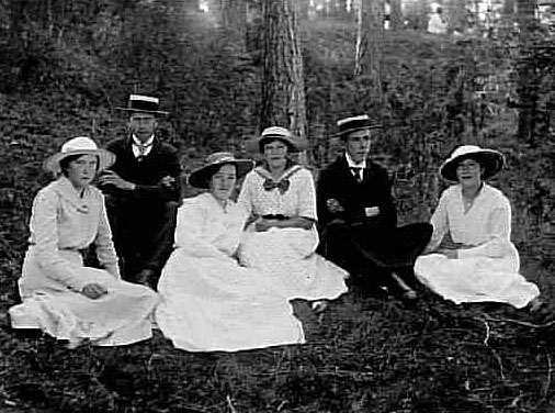 UNGDOMAR SITTANDE I EN SKOGSBACKE.