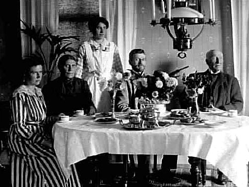 EN FAMILJ SAMLAD VID KAFFEBORDET.