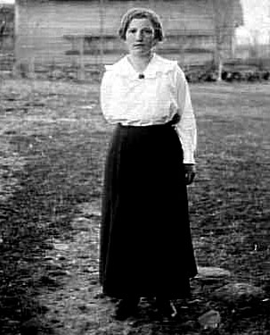 EN UNG KVINNA STÅENDE PÅ GÅRDSPLANEN.