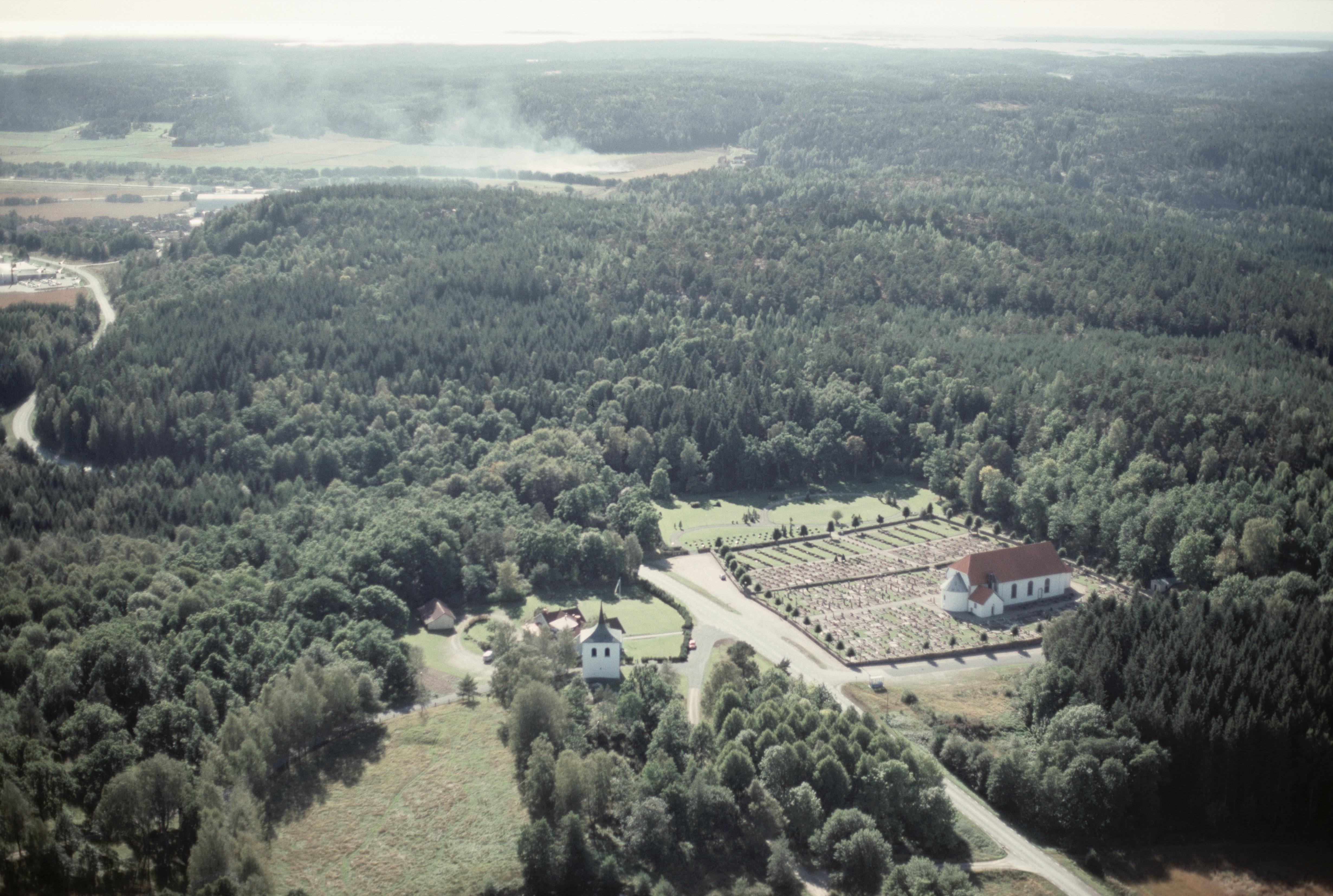 Skee kyrka till höger om bildens mitt. Bilden är tagen mot (väderstreck): SO