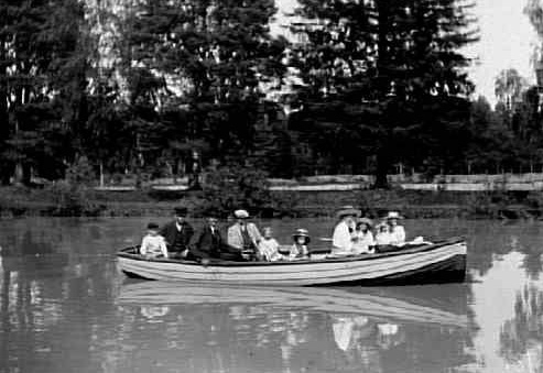 FOLK I EN MINDRE BÅT PÅ GÖTA KANAL.