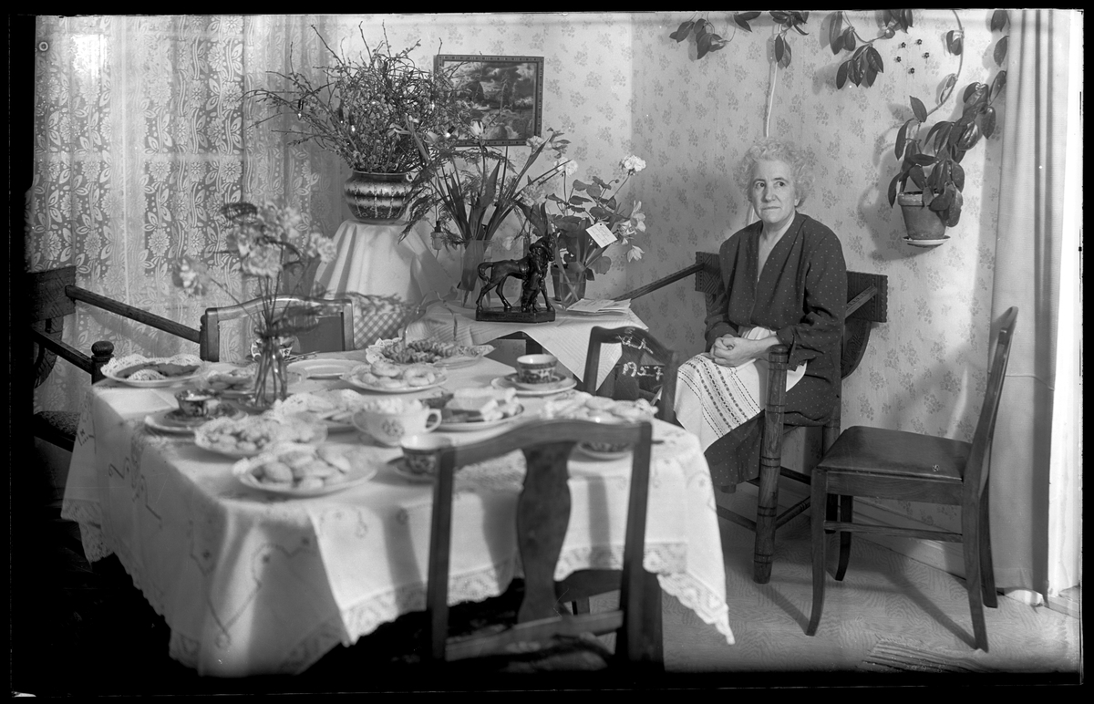 Kvinna vid dukat bord