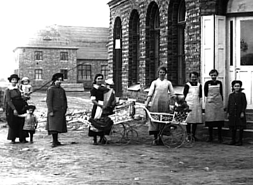 KVINNOR OCH BARN UTANFÖR IOGT LOKALEN.