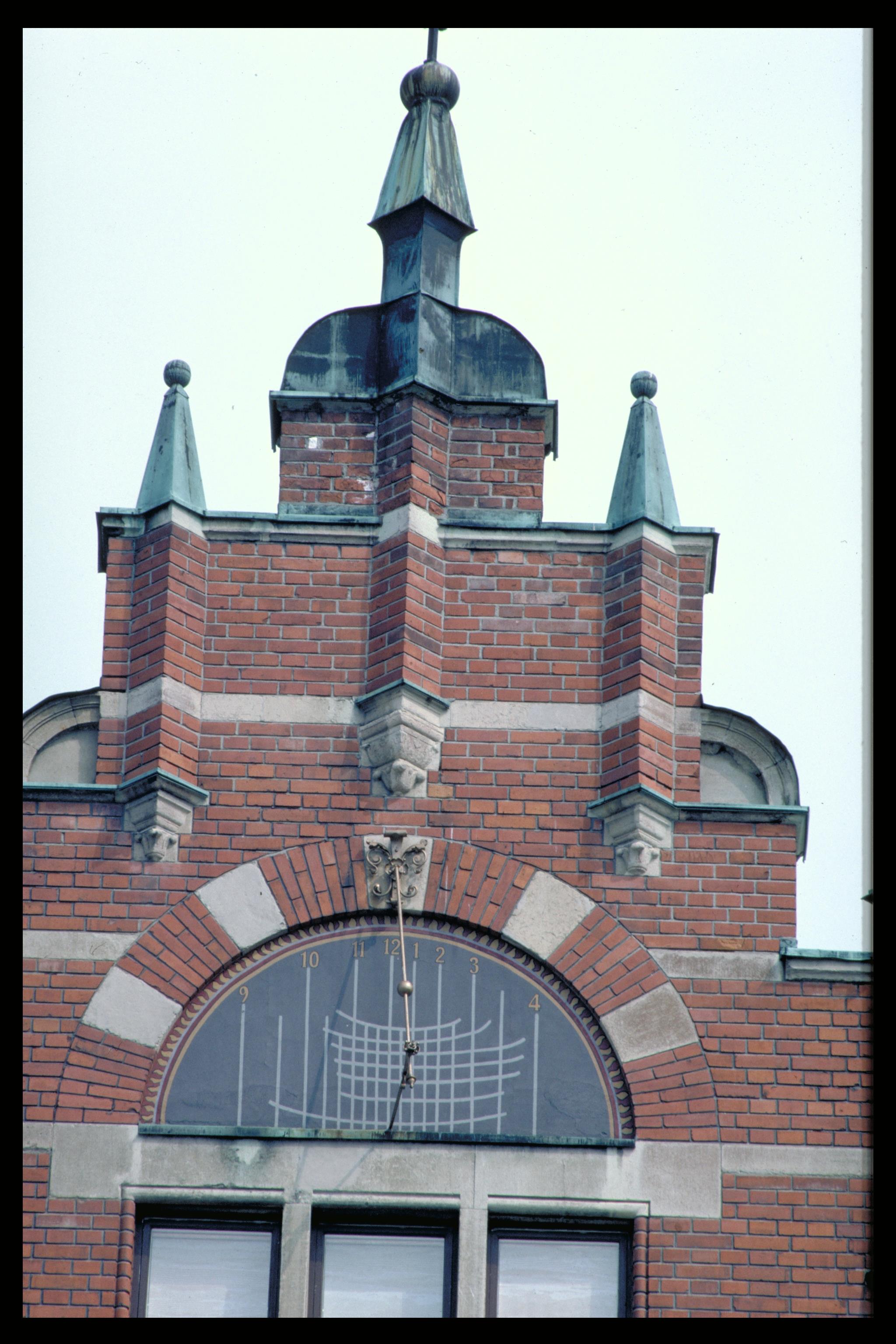 Solur på husets fasad, i Stenstaden. Bilden troligen från början av 1980-talet.