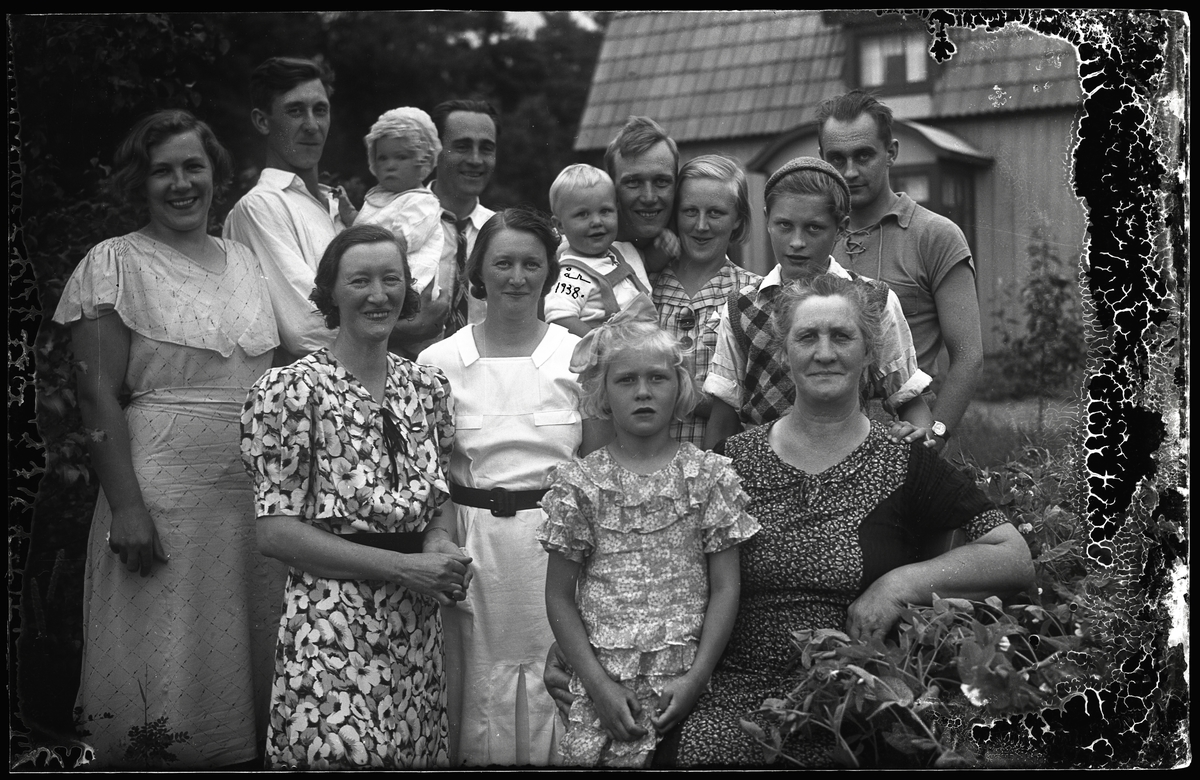 Familj samlad framför bostadshus