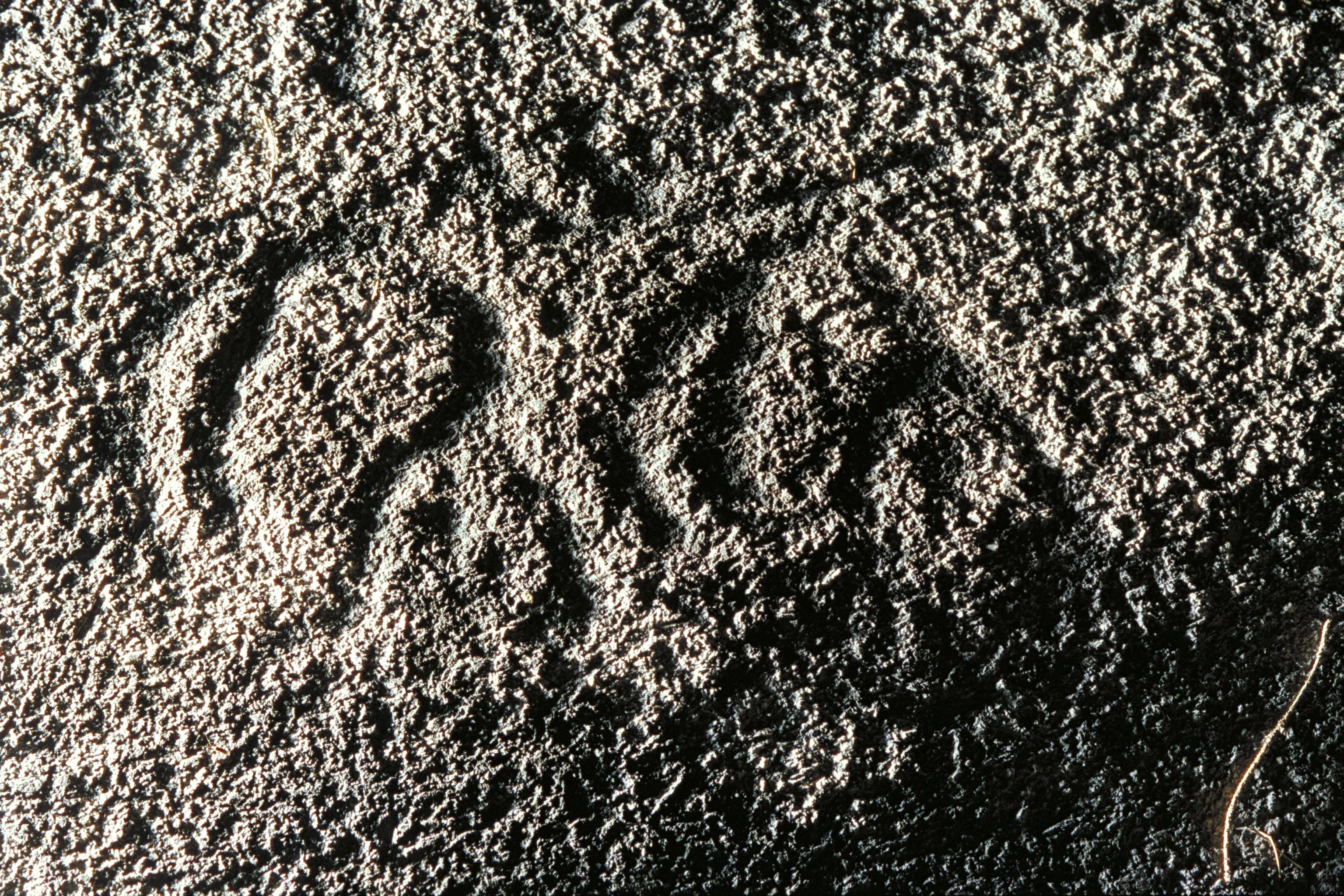 Beskrivning: Vittrad yta med figurer, Askum 2:1.