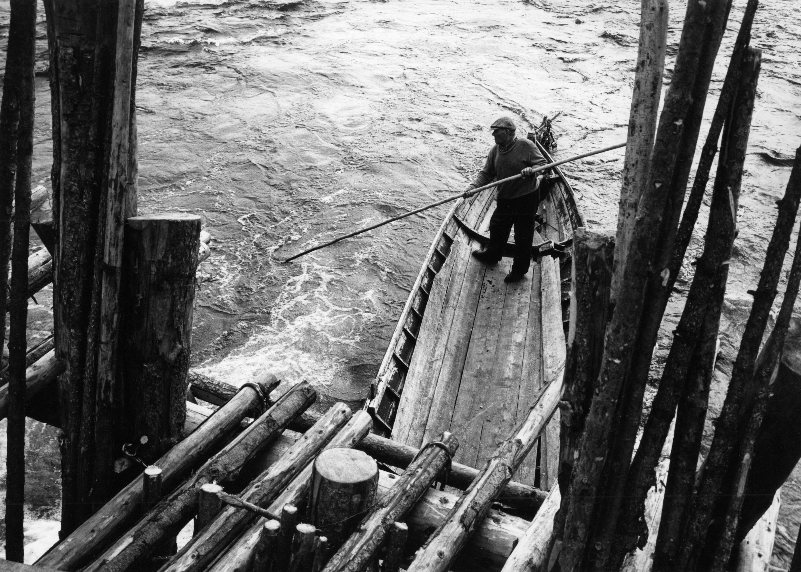 Sikfiske och laxpata i Kukkolaforsen. Bilden troligen från början av 1960-talet.