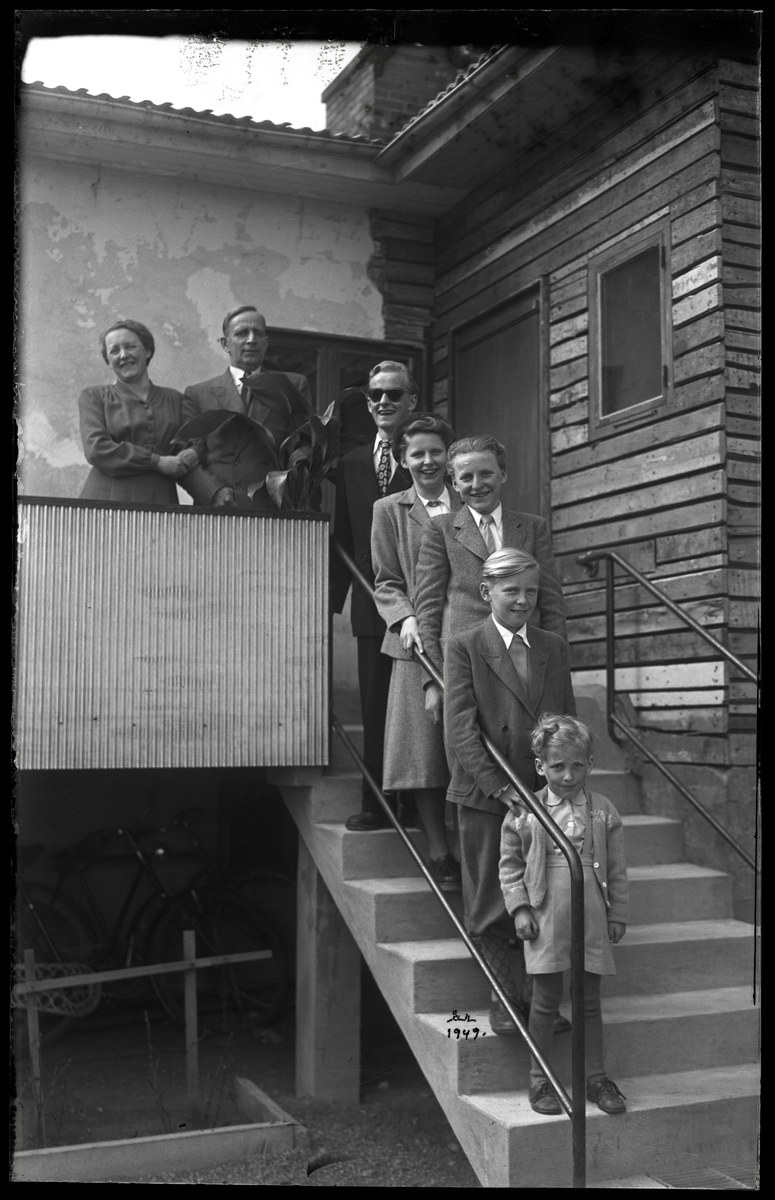 Familj uppställd i trappan