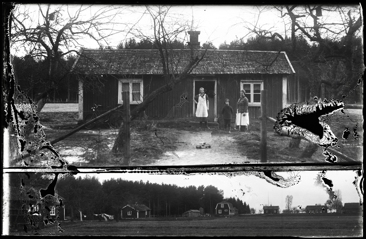 Familj framför torp