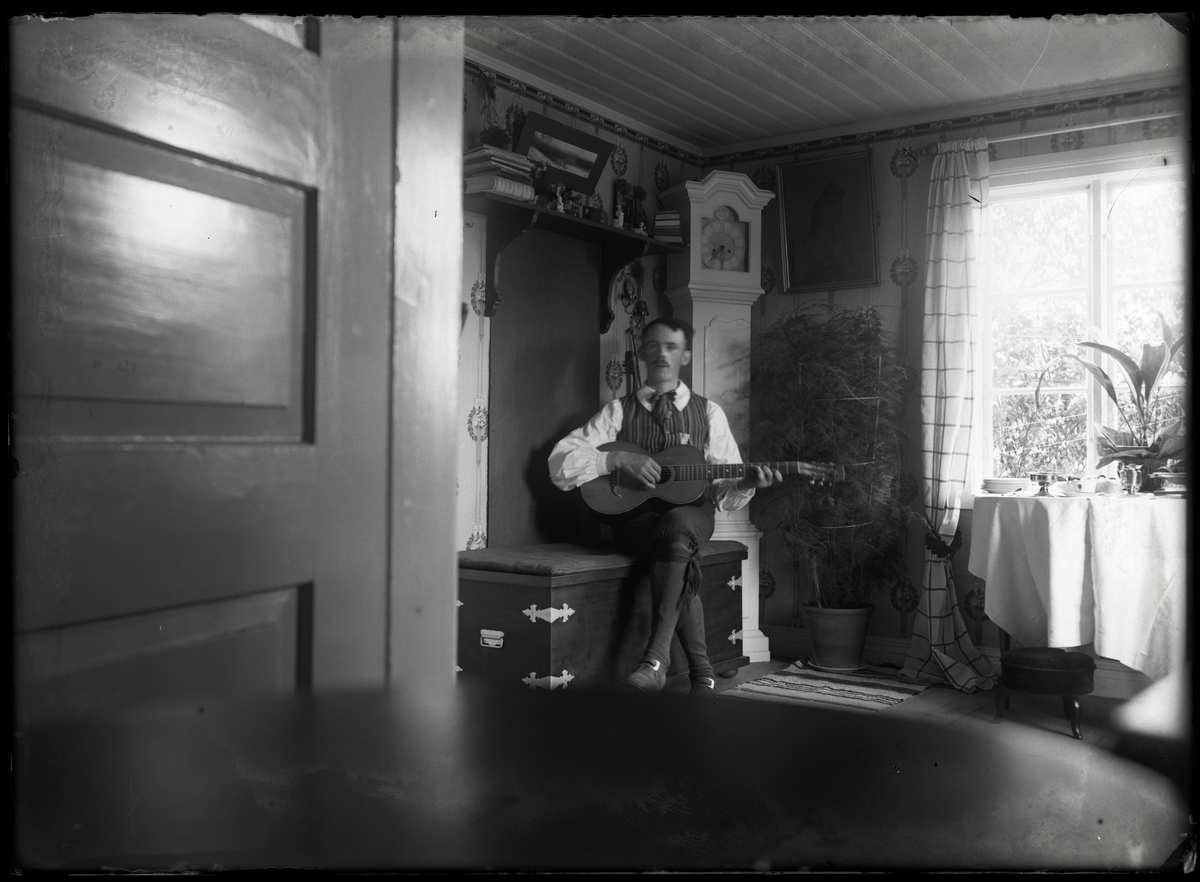 Emil Jonsson i Baljefors kvarn med sin gitarr
