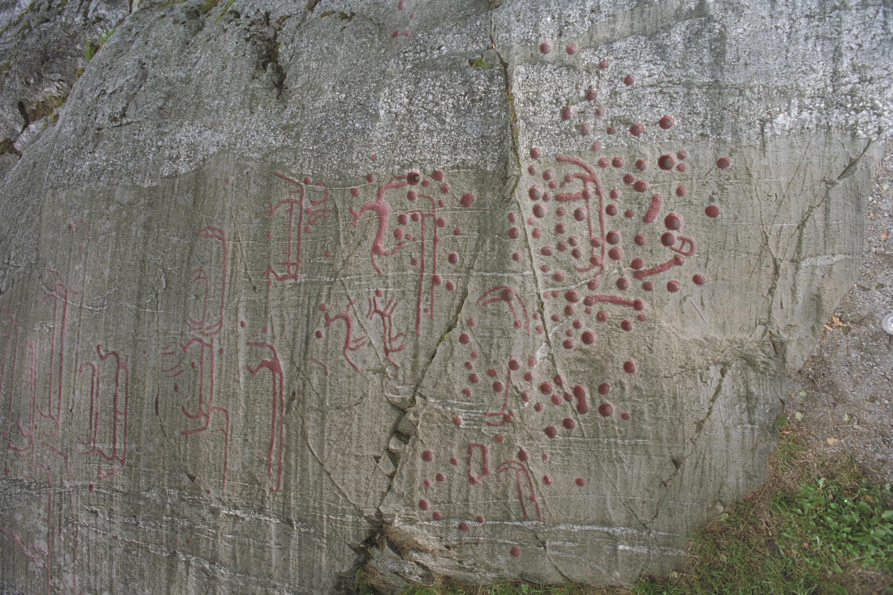 Översiktsbild med skålgropar, skepp och djurfigurer