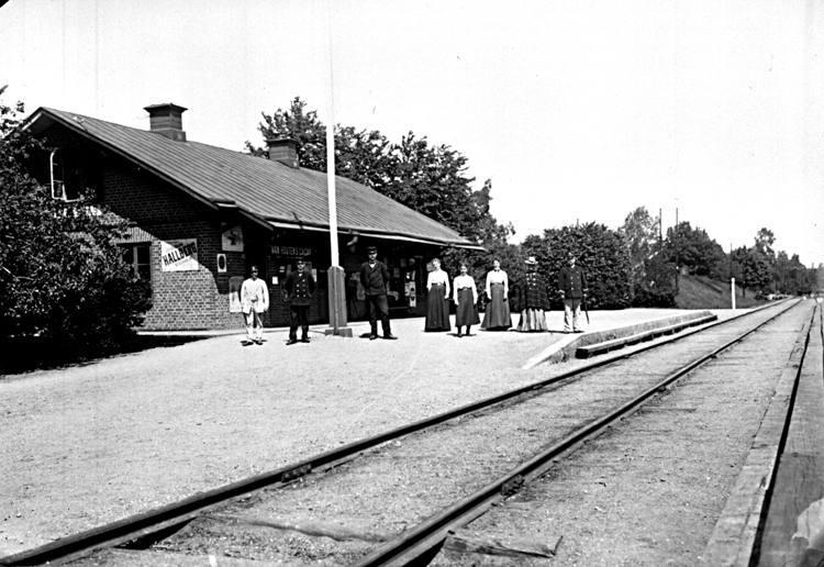 LARS Erik HOLM, f i Överjärna1846, d i Åsbo 1927, var stationsföreståndare i Strålsnäs 1897-1911. Det är sannolikt han som står längt till höger, det kan vara hans hustru, AUGUSTA Christina HOLM f Olsdotter (1844-1935) som står närmast honom.