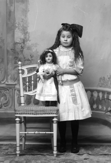 Flicka med stor docka.