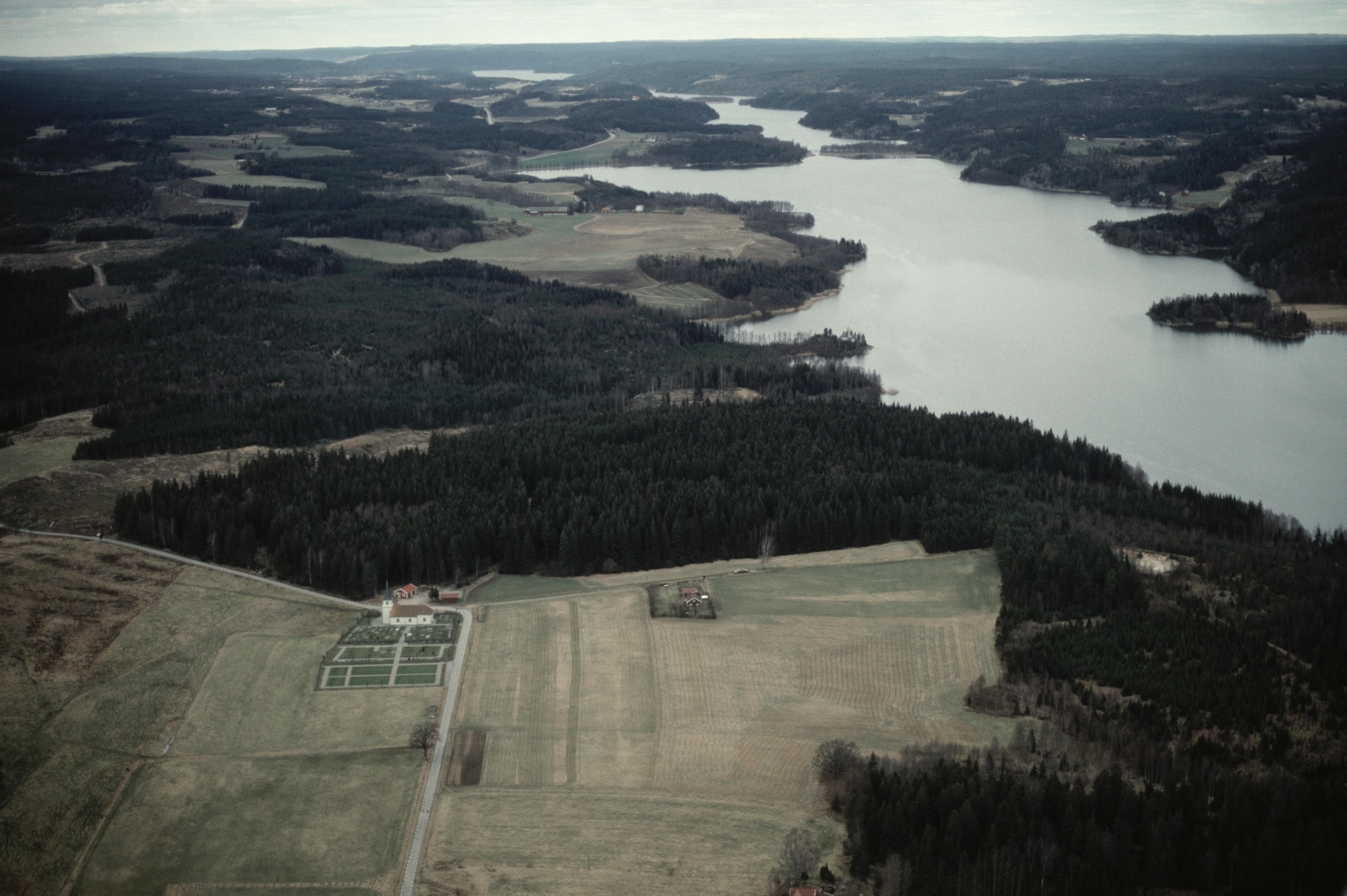 Nere till vänster Mo kyrka. Till höger Västra Bullarestranden. Bilden är tagen mot (väderstreck): N