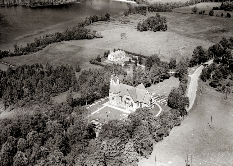 Kyrkan ligger nära Nässjön.