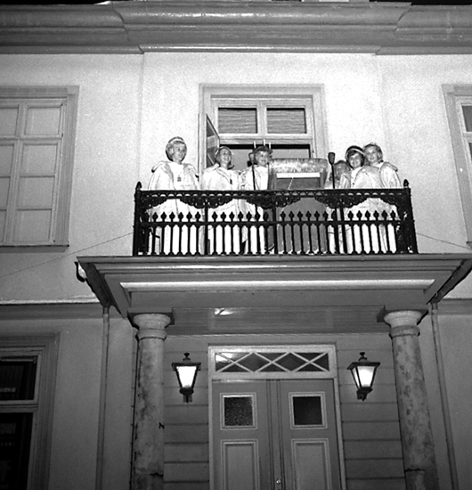 Titel: Skara. Skaraborgs Lucia 1965, Ewa Hornvall, kröning med biskop Sven Danell.