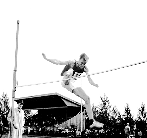 Assar Duregård, skarabon som blev svensk mästare i höjdhopp på 1,96 1951.