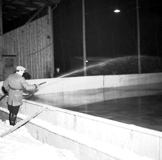 Titel: Skara. Hockeybanan på Skaravallen iordningställes 1955.