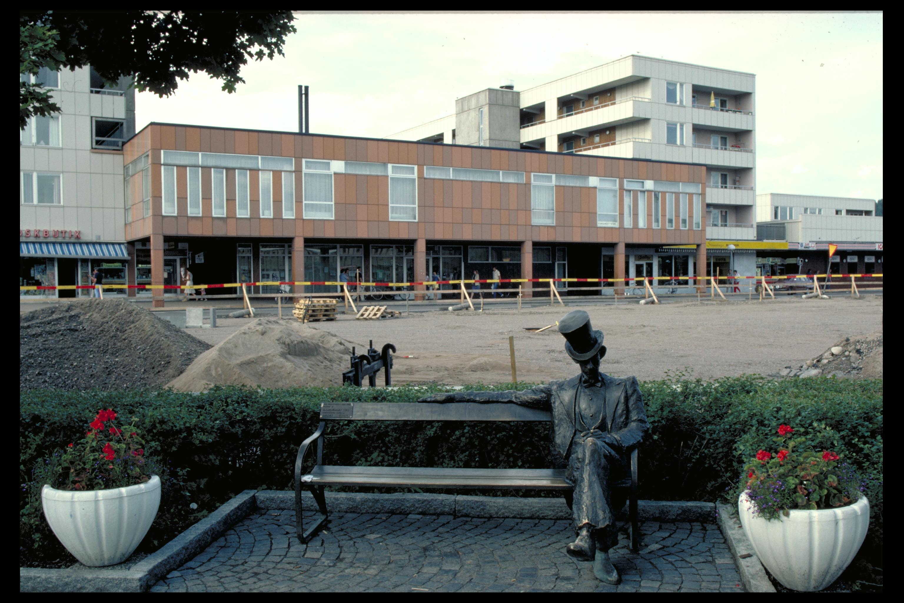 Nils Ferlin på en parkbänk. Bilden troligen från mitten av 1980-talet.