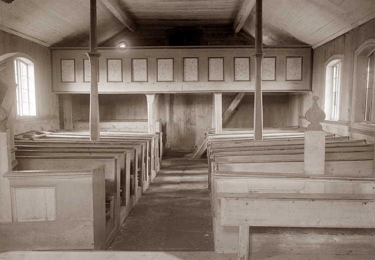 Titel: Härjevadskyrkan finns numera i Fornbyn, Skara. Flyttades dit 1921.