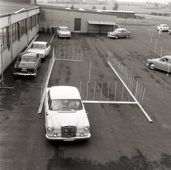 Bilden tagen bakom Textil-Lån, nära Skara brandstation med utsikt mot nya vattentornet och Skövde-vägen.