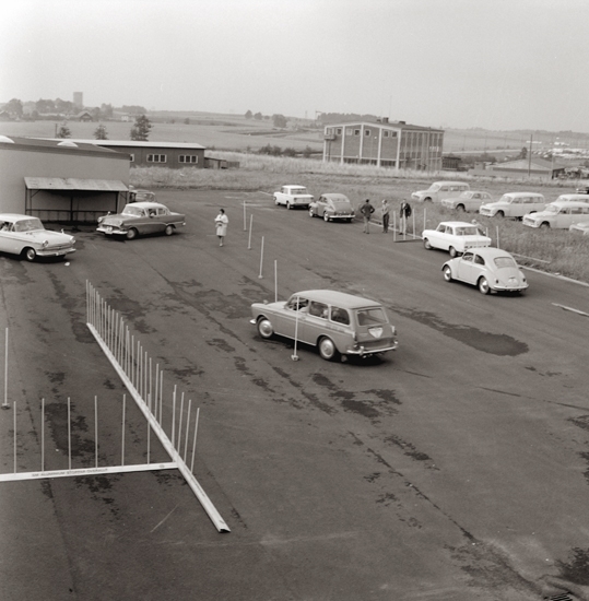 Bilden tagen bakom Textil-Lån, nära Skara brandstation med utsikt mot nya vattentornet och Skövde-vägen.