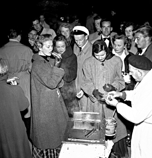 "Varmkorvgubbe" efter "Skultornas" bal 1953.