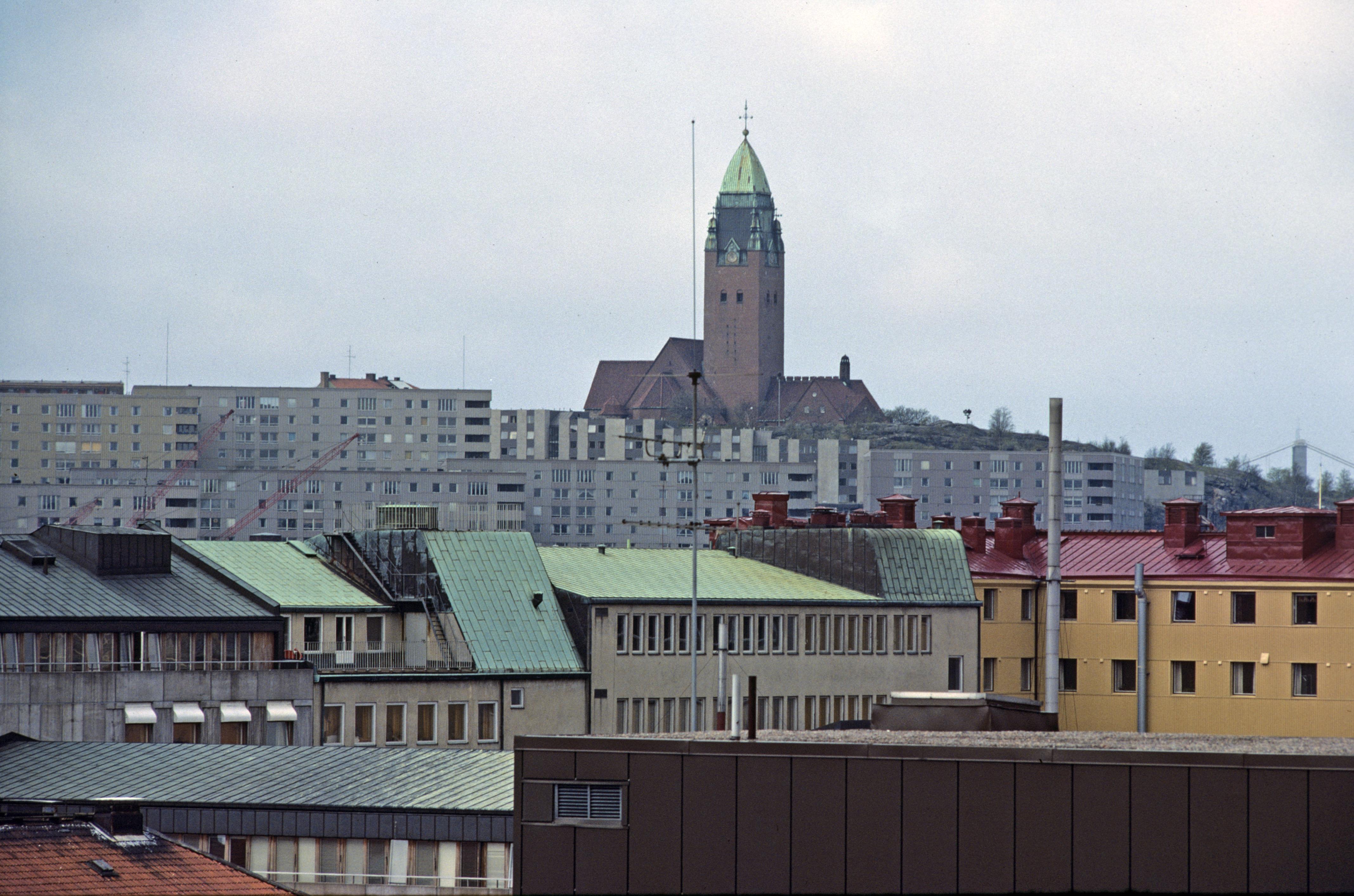 Vy över stadsdelen Masthugget, med Masthuggskyrkan i bakgrunden.