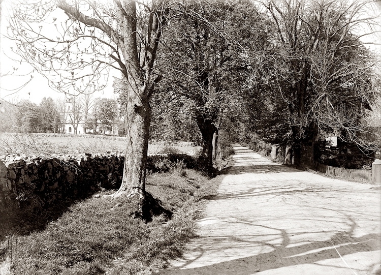 Allé vid landsvägen, till vänster syns Säters kyrka.